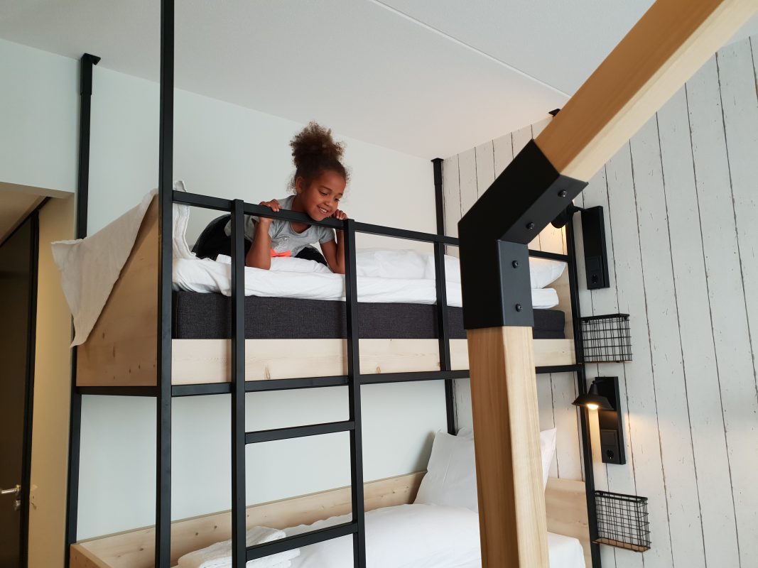 Een heerlijk tweepersoonsbed en voor de kids een avontuurlijk stapelbed waar ze meteen enthousiast van worden. Maar ook met vijf vrienden zit je hier goed, het extra bed schuif je namelijk eenvoudig onder het stapelbed vandaan. Zo creëer je in een handomdraai een flexibele en gezellige slaapruimte waar iedereen zijn plek vindt. De slimme indeling zorgt ervoor dat het altijd ruim en ontspannen blijft aanvoelen, hoe je de kamer ook gebruikt.